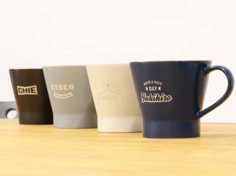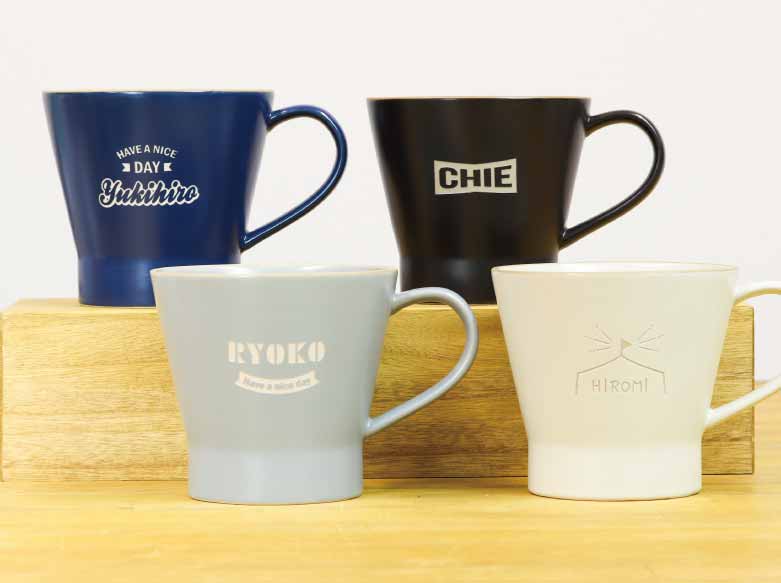 エッジラインの特徴はあえて艶を抑えたマットな光沢と、エッジを効かせたラインです。 テーブルをランクアップさせるハイセンスなデザインと落ち着いた印象のカラーで、食卓をナチュラルに演出します。 大きめでシンプルなマグカップに彫刻で名前を刻めば、おうちでカフェタイムが楽しめます。 大切な方のお名前を刻んで、贈り物にもおすすめです。