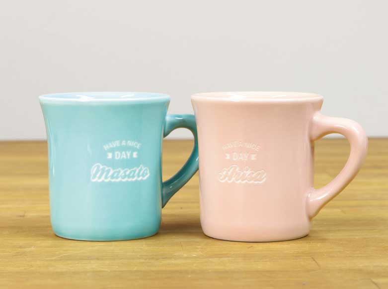 ロゴ風のデザインで名前を刻めばおうちでカフェタイムが楽しめます。 大切な方のお名前を刻んで、贈り物にぜひ、いかがでしょうか。