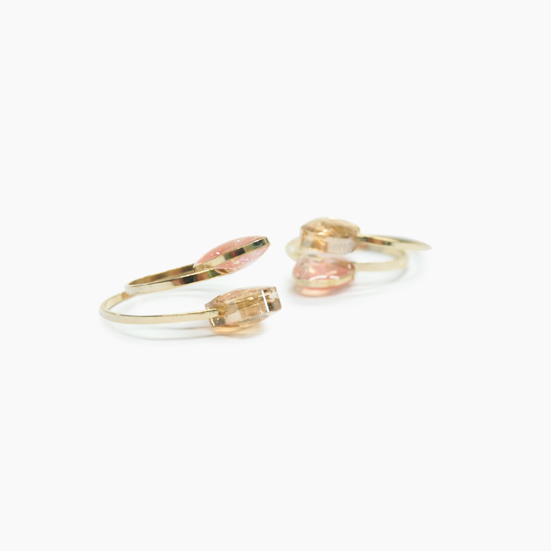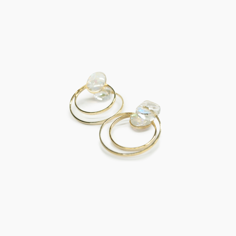 「aller au lit(アレオリ)」がお届けする、エアカフE-1938です。形の異なるクリアなカラービーズを楽しめ2way使用のエアカフです。2重のラウンドデザインがおしゃれな印象です。長時間付けていても落ちにくく耳に負担をかけない、着け心地が優しいイヤリングです。