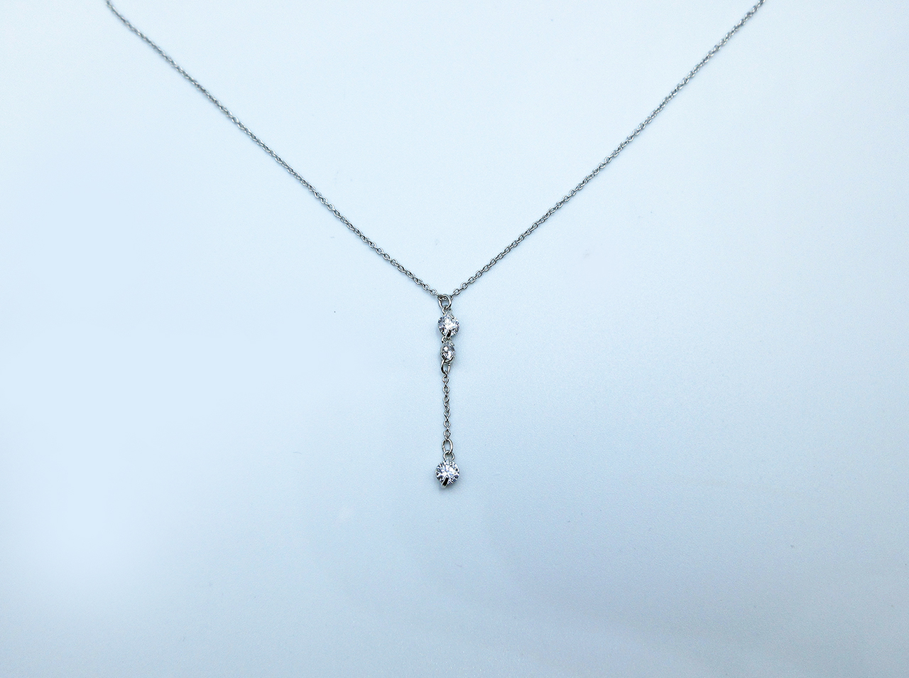 大口注文・法人のお問い合わせはこちら3つのキュービックジルコニアが揺れるエレガンスでシックなデザインのロングセラー商品です。シルバーカラーのシンプルなチェーンなので、オフィスではもちろん、カジュアルにも上品にもファッションを選ばず使いやすいネックレスです。