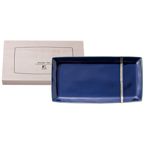 大口注文・法人のお問い合わせはこちら伝統を守りながら、進化を続ける有田焼。深みのある瑠璃の色釉に銀のラインが華やかさを添える大きめの長角皿です。