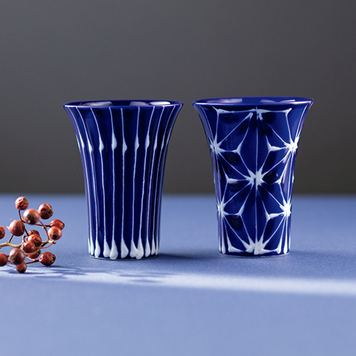 青の深い世界を追求して生まれた「琉璃文様」を施したペアカップです。″一珍″という伝統技法を使ったカップは使うほどにその存在感に魅了されます。一つひとつ手作業のため、色合い・柄などが異なるのも味わい深いですね。アイデア次第で幅広くお使いいただけます。