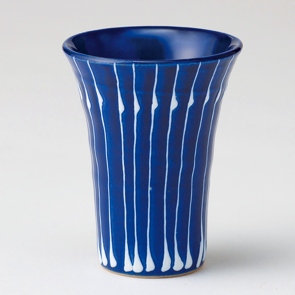 伝統技術を生かし、手書きで書かれた一珍によるデザインが魅力の酒器です。小さいけど瑠璃色と一珍の白がインパクトのあるアイテムです。洗練されたカップをお祝いのギフトにいかがですか?
