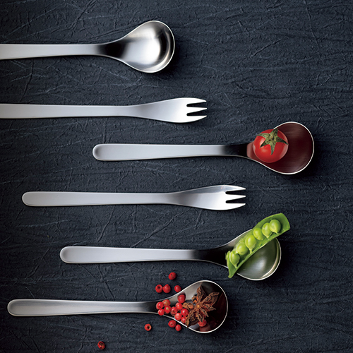 日本を代表する工業デザイナー「柳宗理」。その魅力は美しいフォルムのみならず、使い勝手や安全性にまでこだわった繊細なデザインです。グッドデザイン賞を受賞したティースプーンは「あたたかみ」のある艶消し仕上げで傷が目立ちにくい仕様に。