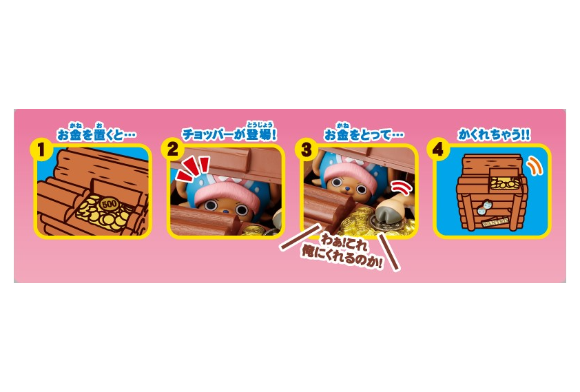 お金を置くと、メロディーとともにメロディが流れるキャラクター「チョッパー」が登場!お金をとってかくれちゃいます。