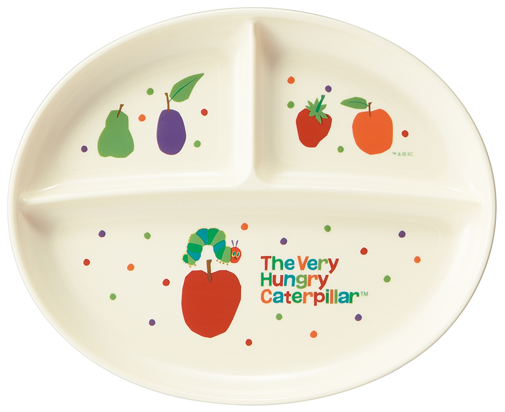 エリックカールの絵本「はらぺこあおむし」がデザインされた、ランチ皿をお届け。耐熱性に優れ、衝撃に強い材質でできた子供用ランチ皿です。軽くて丈夫なPP製、小さなお子様でもスプーンですくいやすい内面形状。食洗機、乾燥機にも使えるので、お手入れも便利です。