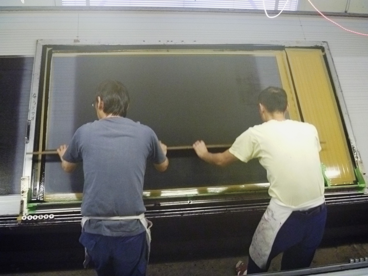 ぼかしがきれいに染まるかどうかは、職人さんの色の混ぜ方に左右されます。 まさに手作業の職人技です。