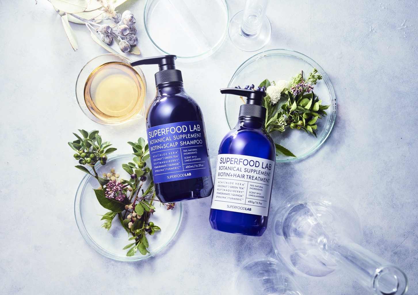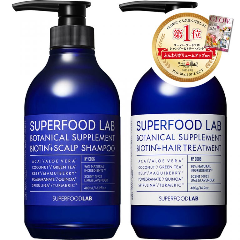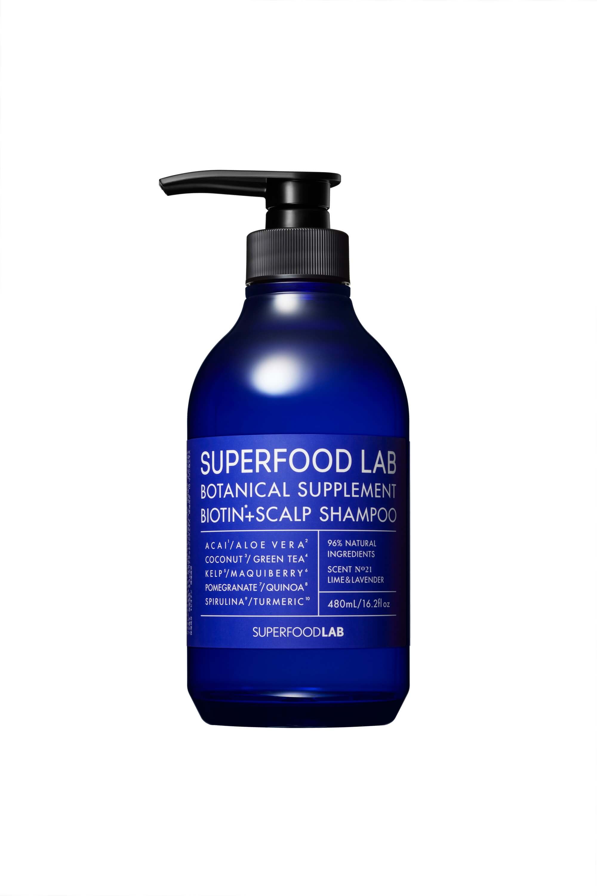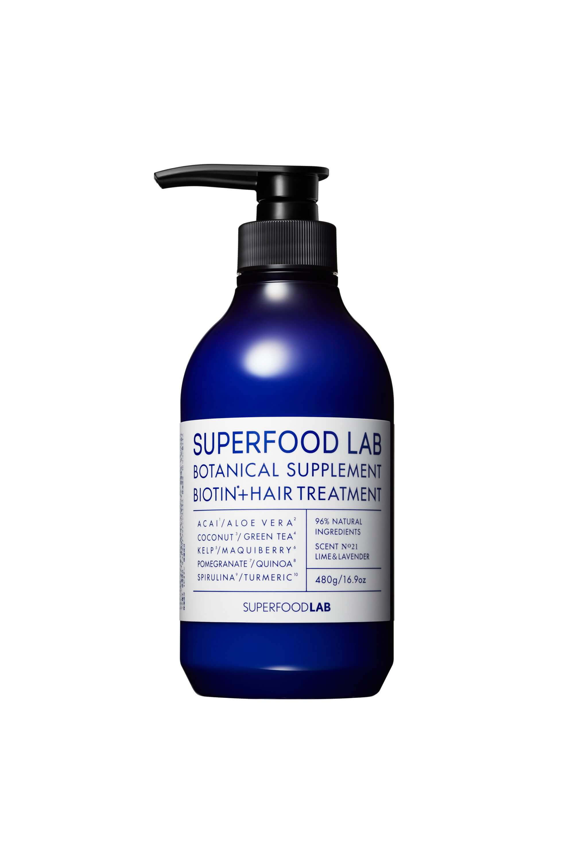 美しく健康に生きるための研究を重ねる「SUPERFOOD LAB(スーパーフードラボ)」のスカルプシャンプー&ヘアトリートメントセットです。ビオチンと選りすぐりの10種の植物由来成分を配合しています。潤いを与えながらハリコシのある髪に導きます。ライム&ラベンダーの香りです。