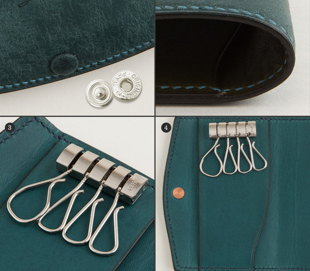 スイスamiet社による4連キーフックを採用することで、とても使いやすいキーケースになっています。