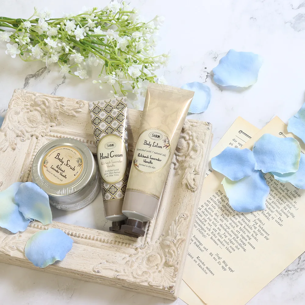 イスラエルでスタートしたボディケアブランド「サボン(SABON)」からオリジナル3点セットをお届け。上質な植物成分を使用しています。「パチュリ・ラベンダー・バニラ」「グリーン・ローズ」「デリケート・ジャスミン」の3種類の香りからお選びいただけます。