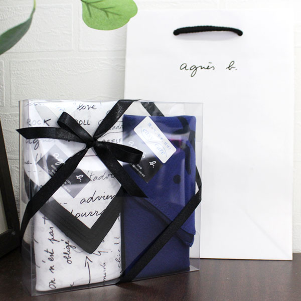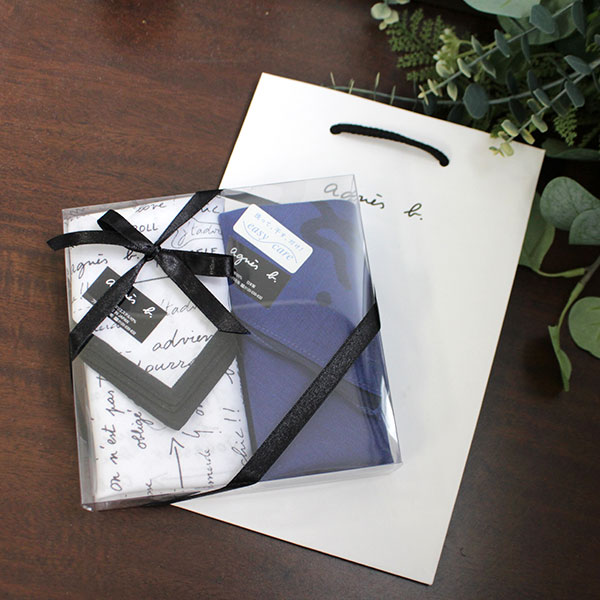 シンプルなデザインの中に遊び心のあるアニエスベーのハンカチセット。男女兼用でお使いいただけます。時代に左右されないデザインが様々なお祝いシーンにぴったり。大切な方へ、お祝いの贈り物にいかがでしょうか。