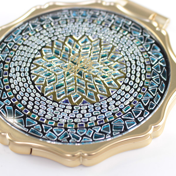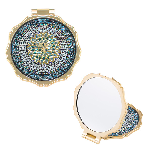 繊細なモザイクが輝く手鏡。高級感漂う、ラグジュアリーなデザインが大人な女性にぴったりです。大切な方へ、お祝いの贈り物にいかがでしょうか。