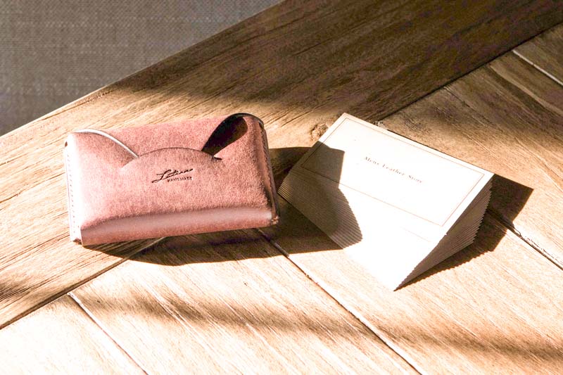 職人の高橋秀行さんが裁断から裁縫・仕上げまで全工程を手作業で行なっている、こだわりのイタリアの革を使用した名刺入れ。