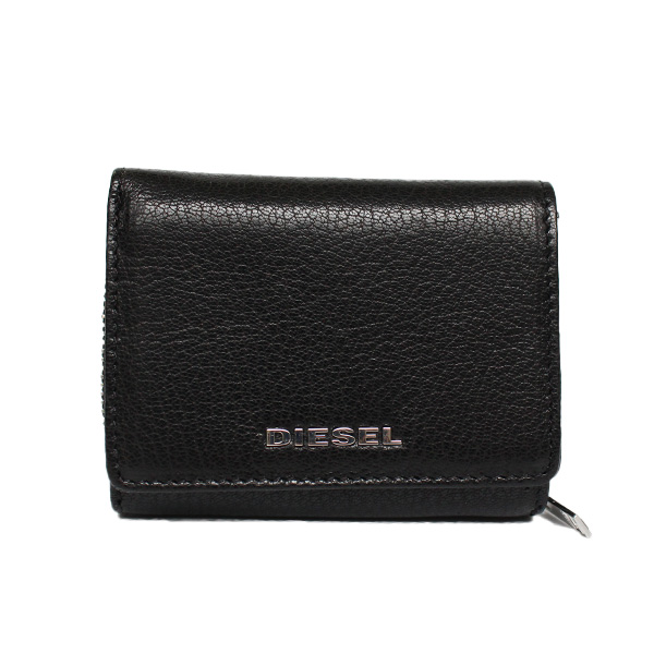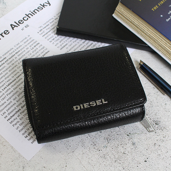 大口注文・法人のお問い合わせはこちらメタルのDIESELロゴブランディングがさりげなく施されています。小銭入れは独立のファスナー開閉で、仕切りもついているため仕分けもできます。