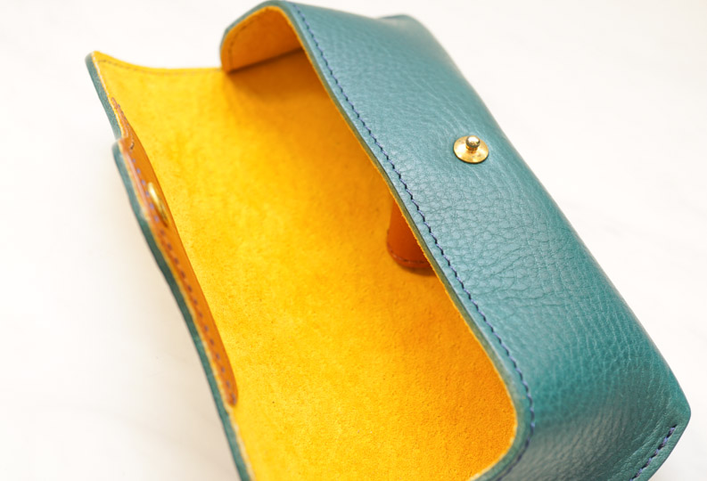 【CHINEMA】の魅力の1つである表裏のカラーと素材が特徴。 表はシックな大人な色合いに対し裏は鮮やかな色合いです。 開いたときにちらっと覗いておしゃれ! 表はつるっとしたイタリアンレザーに対し裏は少し起毛したピッグスエードです。 どちらも手になじむ革で長年の経過を楽しめます。
