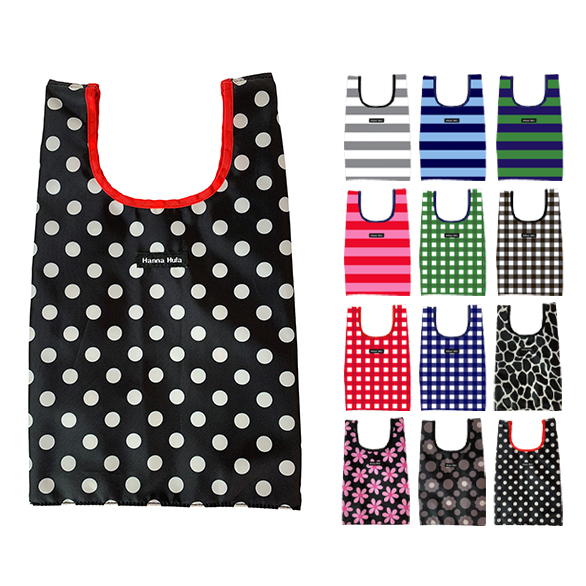 毎日の生活が楽しくなるハッピーアイテムを生み出す「Hanna Hula(ハンナフラ)」のエコバッグSです。マチがたっぷりある収納力抜群のエコバッグです。幅広の持ち手で重い荷物でも腕に負担がかかりにくく、汚れても洗濯できます。豊富なデザインは13種類からお選びいただけます。