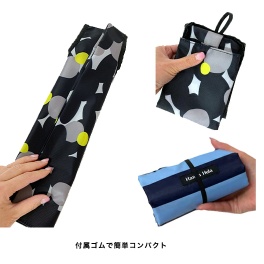 マチがしっかりあるエコバッグは、付属ゴムバンドでコンパクトに小さくまとめることができ、バッグに入れてもかさばりません。気軽に持ち運びすることができますね。