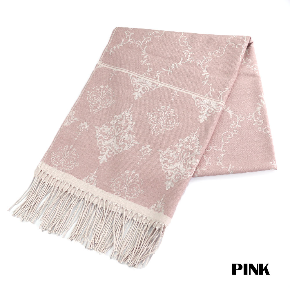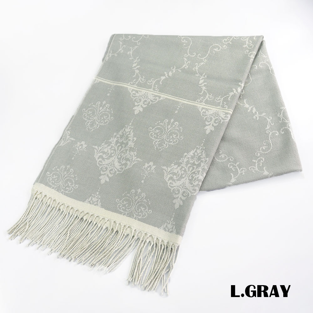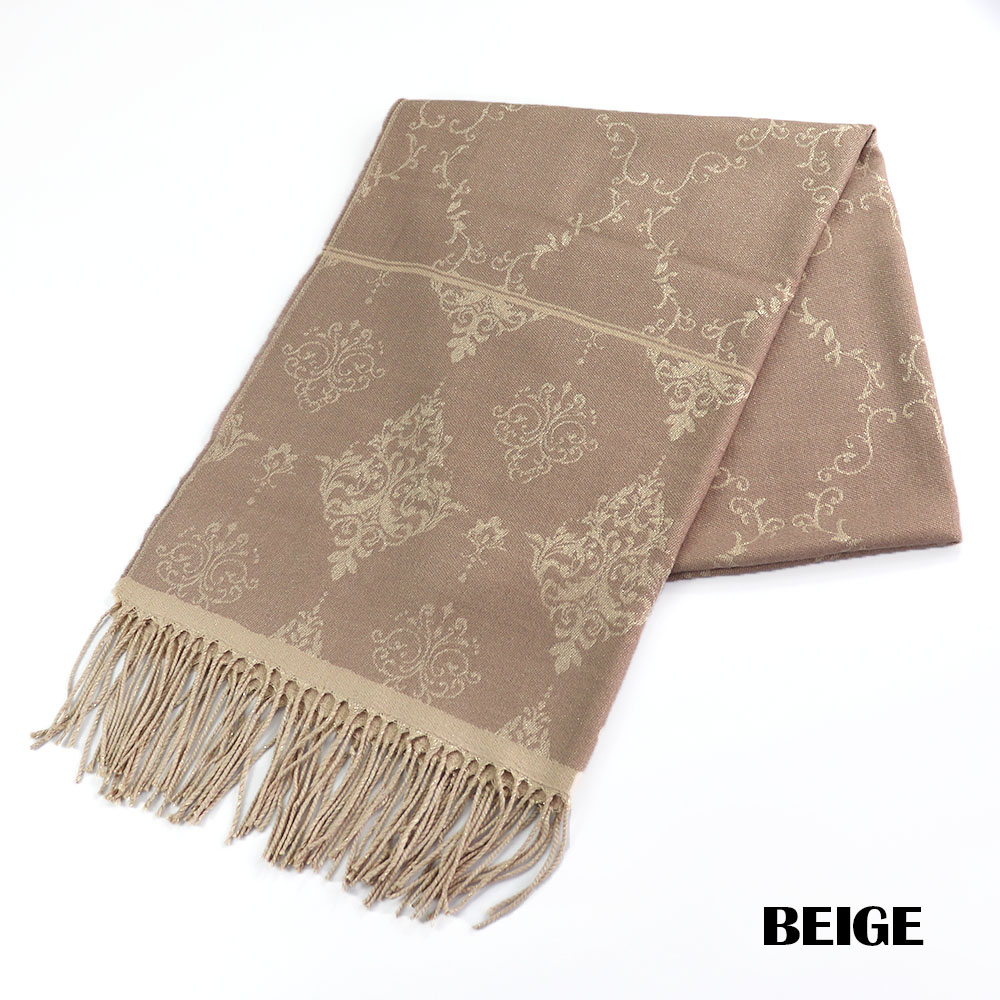 シーズンのトレンドを抑えたマフラーやストールを提供する「CNK(シーエヌケー)」のロイヤル柄ラメジャガードストールです。生地全体にさりげなくラメがきらめき、大判なのでひざ掛けとしても活躍します。優しい雰囲気のカラーは5色展開です。気軽に洗濯できるのもポイントです。