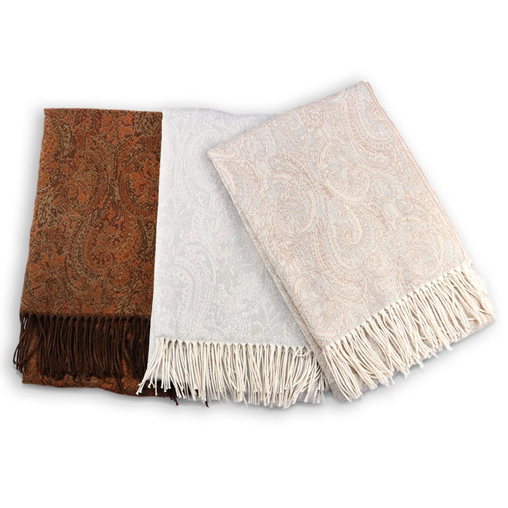 大口注文・法人のお問い合わせはこちら多色の糸をジャガード織りすることで、ペイズリー柄を表現した珍しいストールです。人気のジャガードバックのイメージをそのままストールに落とし込んでいます。ご家庭で手洗いでもできるので、毎日気軽にお使いいただけます。