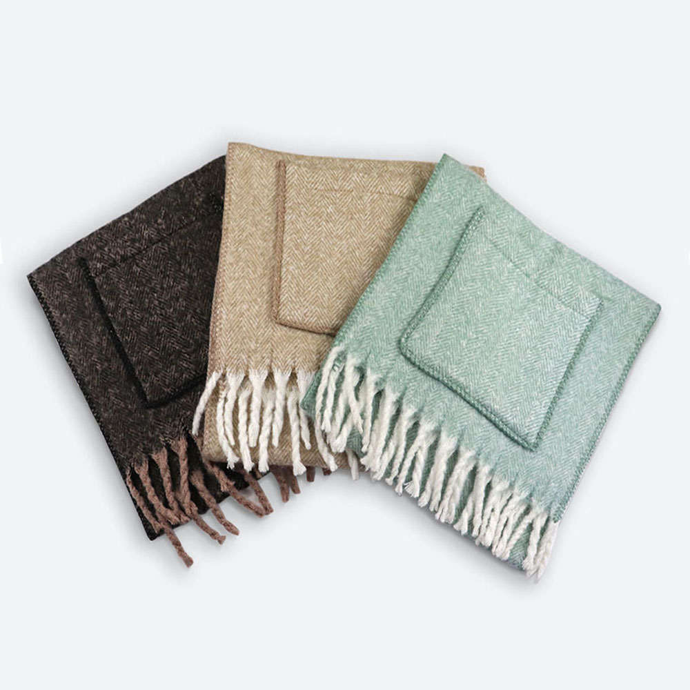 ボリューム満点のフワフワしたストールは、セーターの様なぬくもりで安心感があります。鮮やかなカラーはファッションの差し色としてもお使いいただけます。肩にもかけられるので、オフィスや自宅での防寒対策にも活躍します。ポケットが付いたおしゃれなストールをプレゼントしてみませんか。