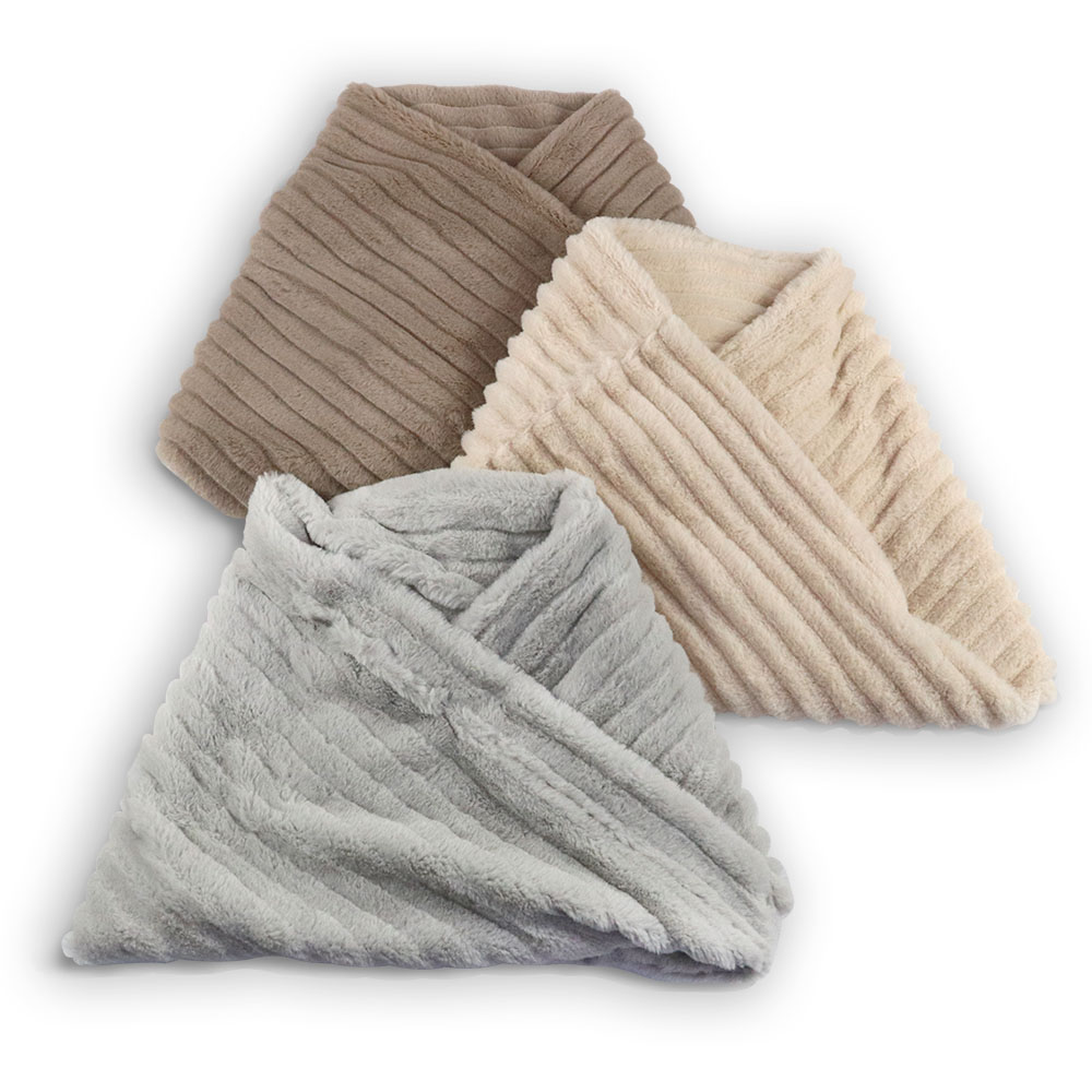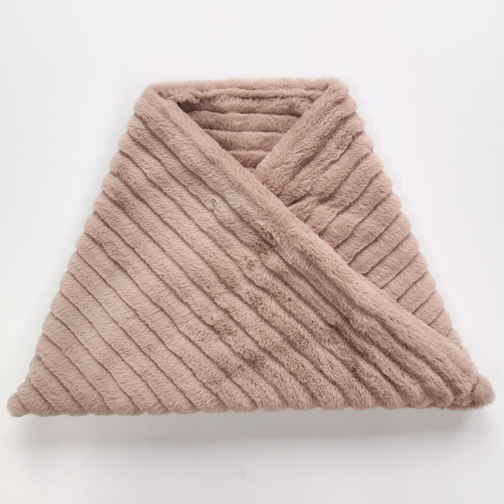 台形の形をしているので、肩のあたりまで暖かくなります。外出時に使うだけでなく、ステイホーム生活で自宅でも寒さ対策としてお使いいただけます。厚手でふわふわなファーに包まれて寒さ知らずです。いつものマフラーとは違うものをお探しの方にもおすすめです。