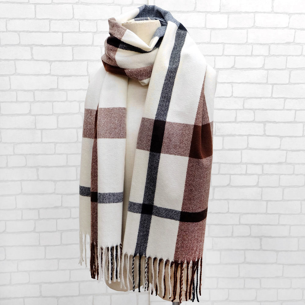 大口注文・法人のお問い合わせはこちらリサイクル素材を使用した地球に優しいストールです。シックなチェック柄になのでどんなファッションにも合わせることができます。ご家庭で洗濯機で洗えるので、毎日気軽にお使いいただけます。