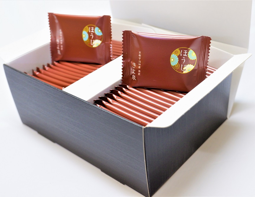 大口注文・法人のお問い合わせはこちら「きよ泉」こだわりの茎ほうじ茶をふんだんに使用した、芳ばしい風味香るほうじ茶チョコレートです。使用している茎ほうじ茶は通常のほうじ茶とは違い、一番茶の茎の部分を独自の焙煎方法の「砂炒り焙煎」で炒っています。ほうじ茶の中で最も上質とされていることから、ほうじ茶の女王とも言われています。