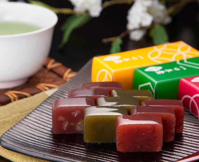 | 原材料 | 【煎茶】 緑茶 【ようかん】 【抹茶】グラニュー糖(国内製造)、白生あん、寒天、抹茶、和三盆糖/着色料(クチナシ、紅花黄) 【栗】グラニュー糖(国内製造)、小豆生あん、栗甘露煮(栗、砂糖)、寒天、和三盆糖 【小倉】グラニュー糖(国内製造)、小豆、寒天、和三盆糖 |