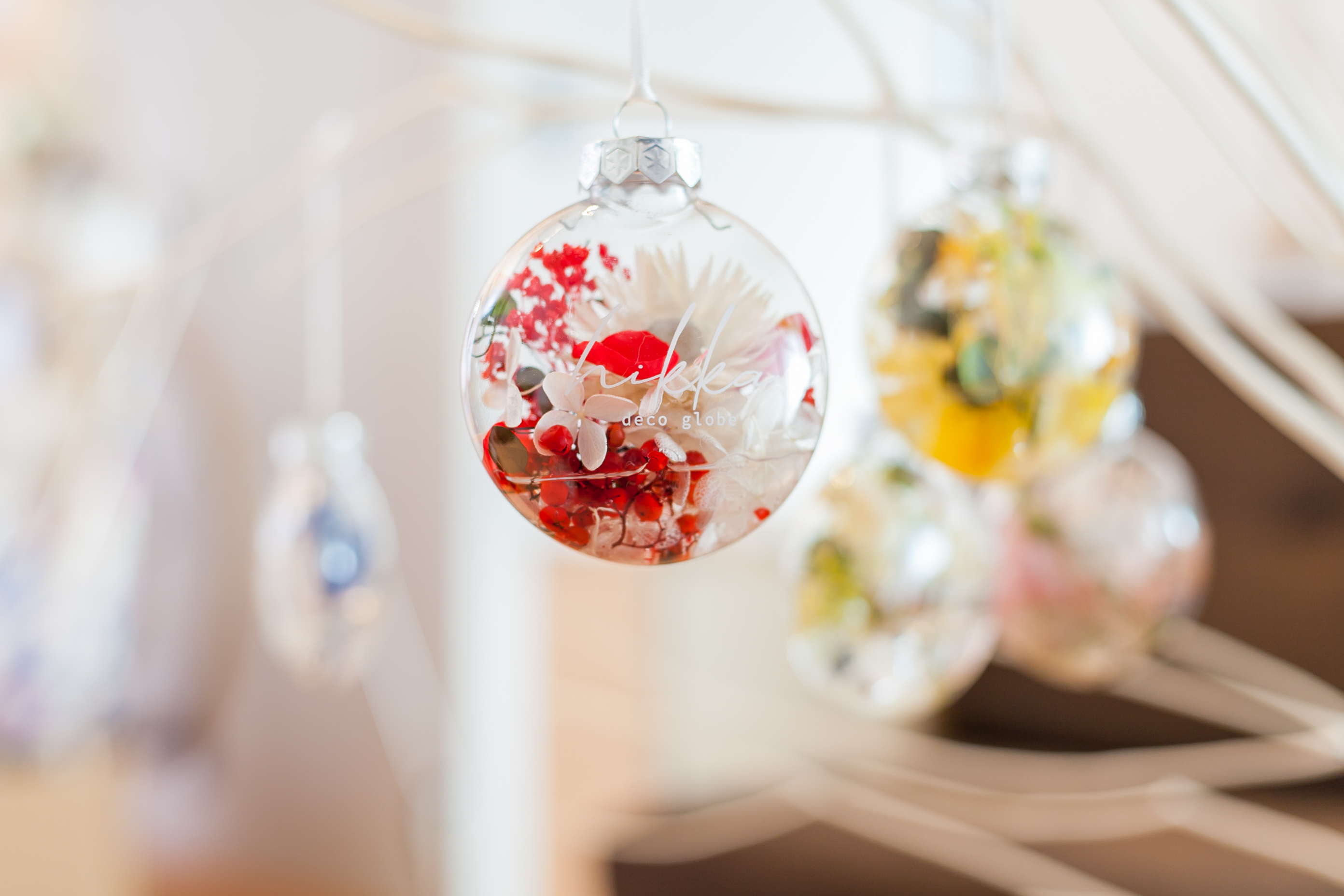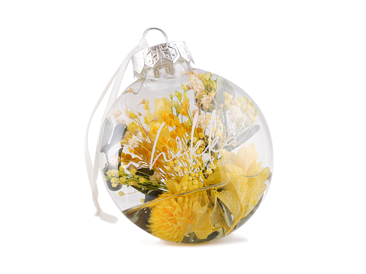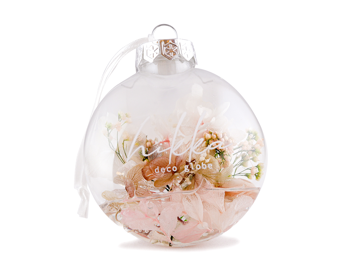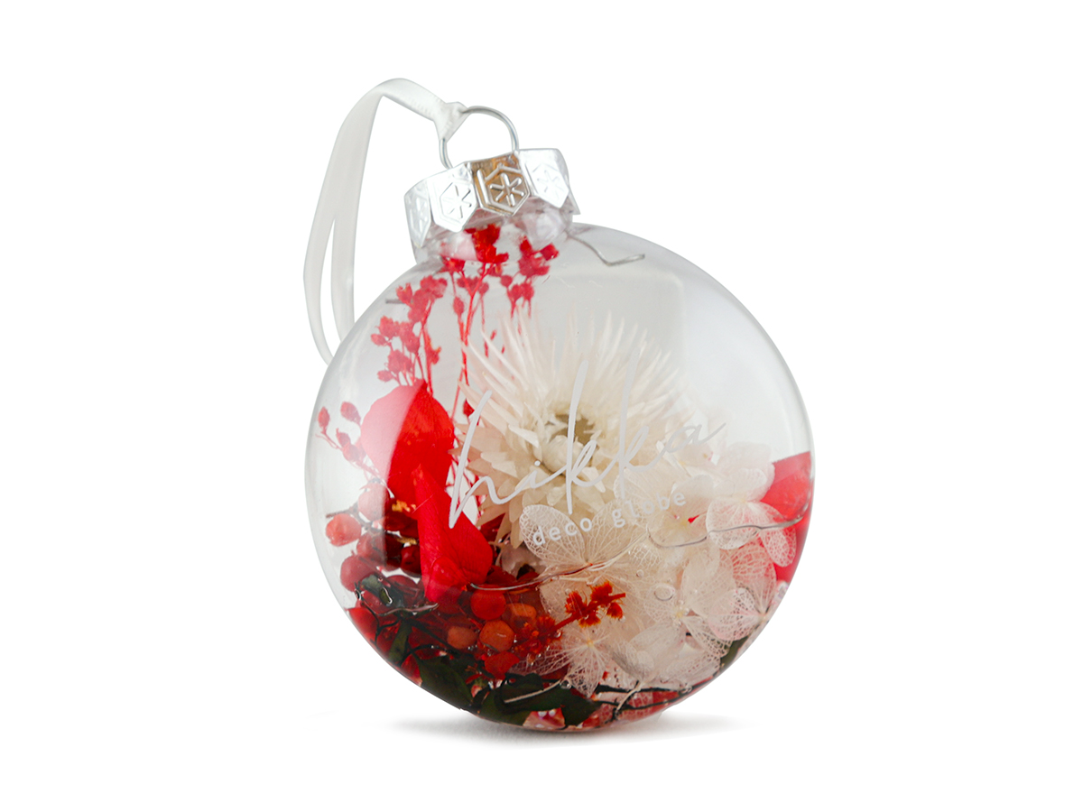 大口注文・法人のお問い合わせはこちら美しさが長く続くドライフラワーとプリザーブドフラワーをぎゅっと詰め込んだオーナメントです。本物の花々がまるで水中で浮遊しているような、季節を問わず飾ることができる新感覚のインテリアです。クリスマスのオーナメントからインスピレーションを受け、ハーバリウムともスワッグとも違う雰囲気が魅力です。