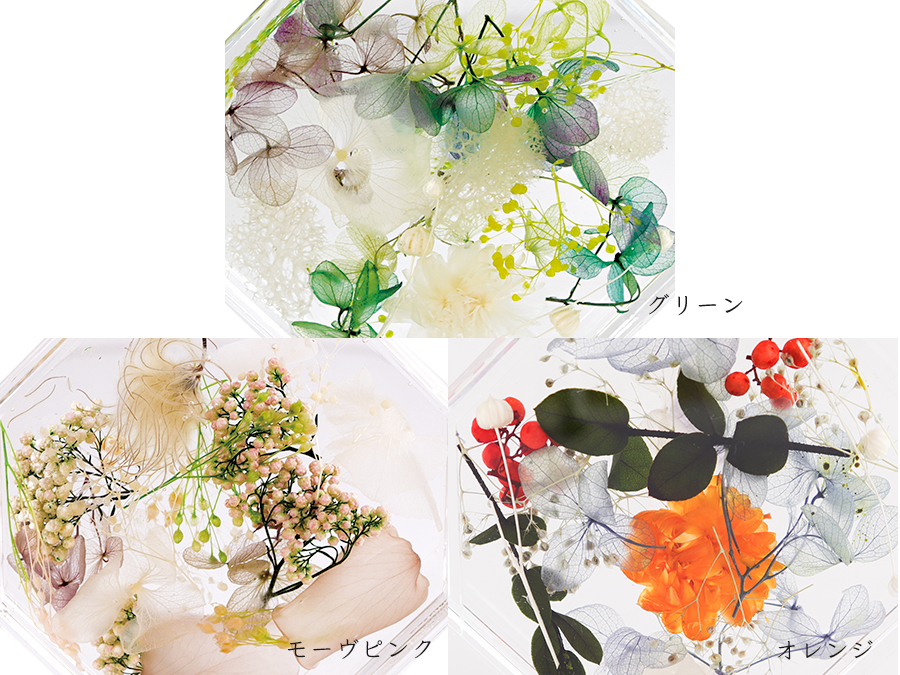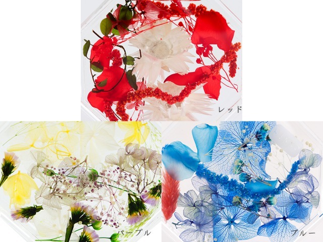 | 保存方法 | ・天然草花を使用しているため、紫外線や熱、酸化等の原因で自然退色する場合がございます。 ・直射日光のあたるところや高温多湿の場所、火気の近くには置かないで下さい。 |