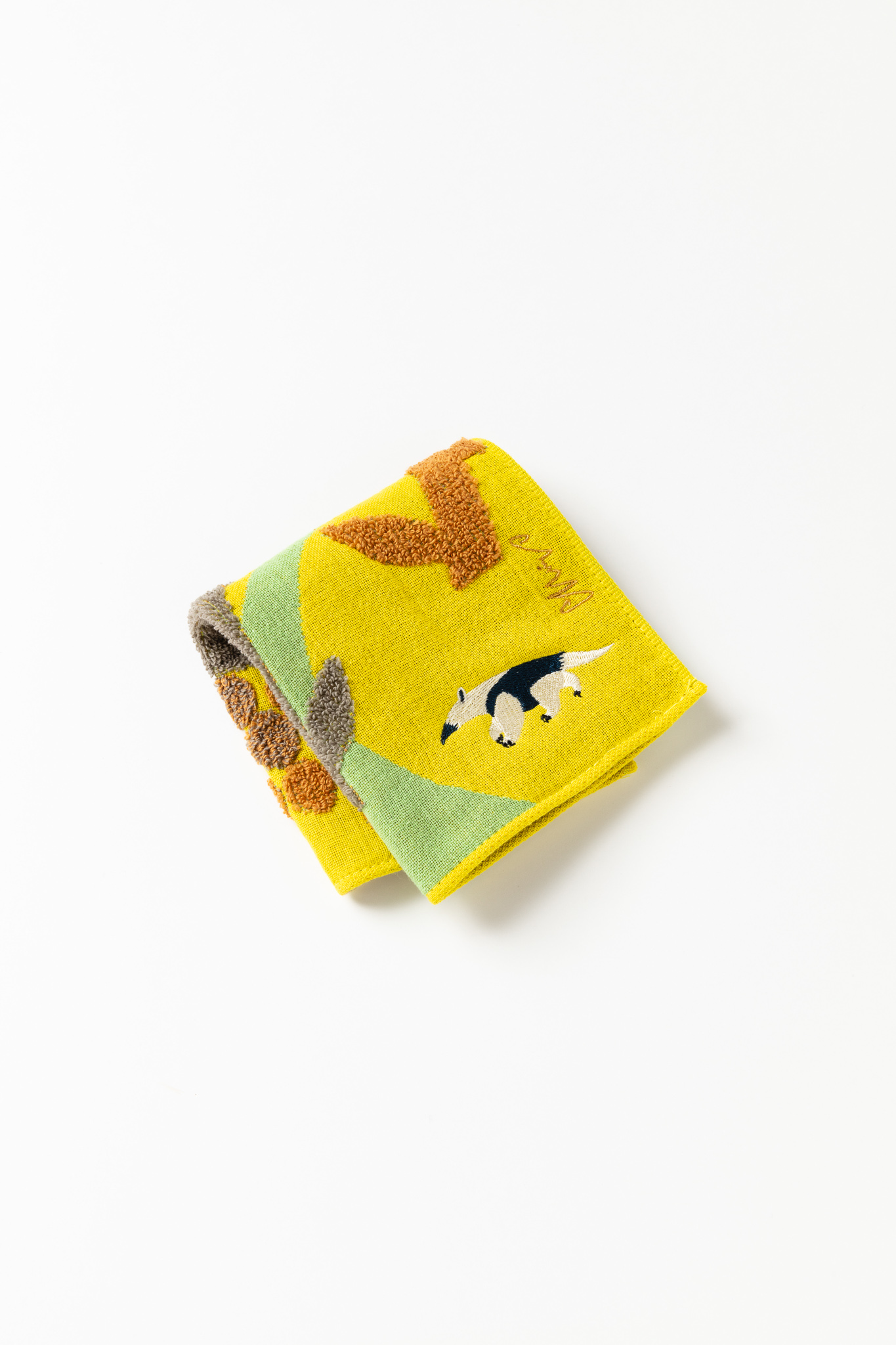 カワイイ生き物たちの刺しゅうが入った 「ガーゼ・パイルハンカチ」はプレゼントにお勧めの商品です。 ・カバ/パープル ・ハイエナ/ベージュ ・アリクイ/イエロー ・リス/レッド ・シーラカンス/ブルー ・ネコ/オレンジ 今日はどの仔にしようかと 迷ってしまいそうな豊富なデザインからお選びいただけます。