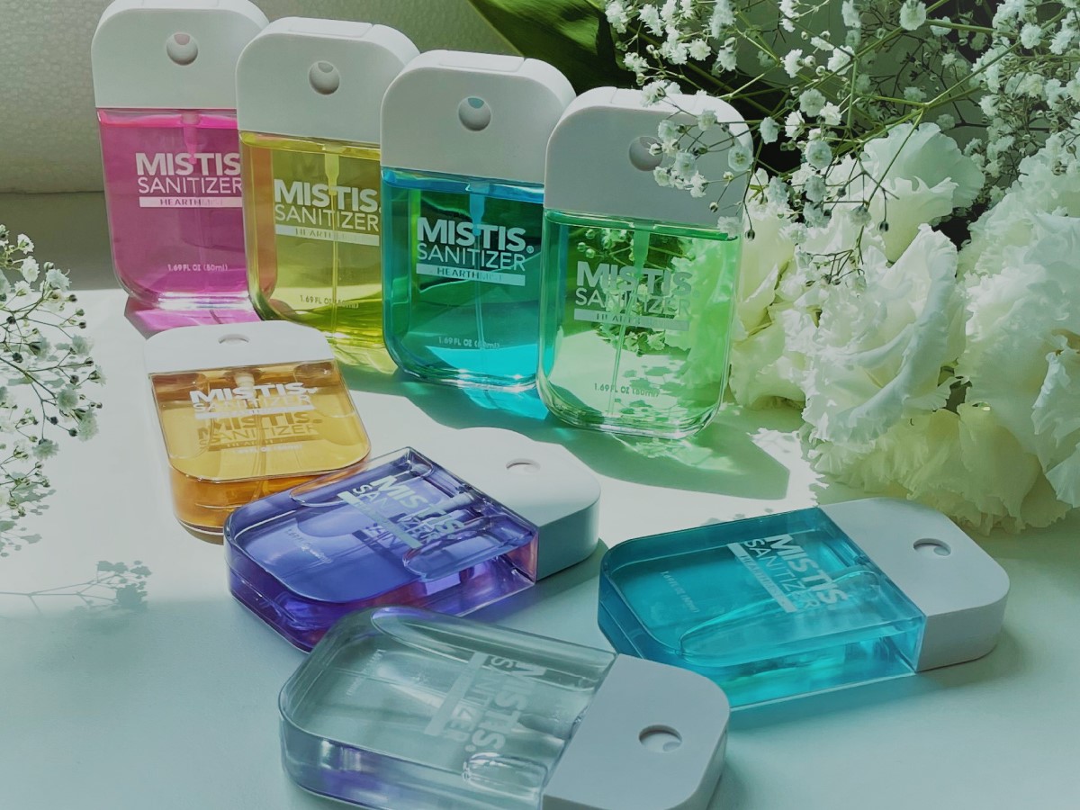 【MISTIS SANITIZER】はカラフルな香り付き除菌スプレーです。 新しい生活様式になり、除菌スプレーを持ち歩くのが当たり前の世の中になりました。 「せっかく持つならおしゃれなものがいい!」 そんなあなたにオススメのアイテムが【MISTIS SANITIZER】です。 キャップなしでサッと取り出してシュッと使える。使いやすいデザインで、持ち歩きに最適。インテリアとしてもお部屋に馴染むデザインです。