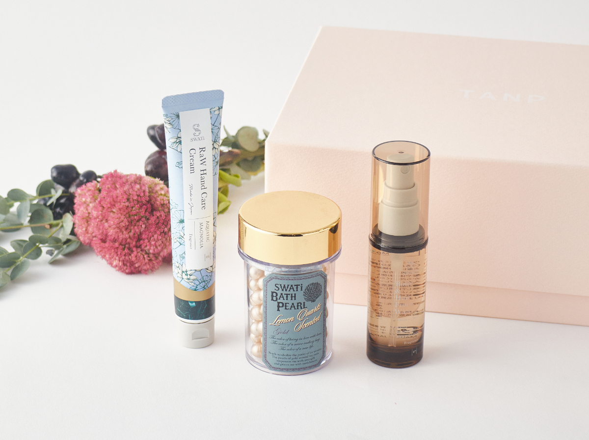 ・入浴剤 ・ボディ&ヘアウォーター ・ハンドクリーム ・TANP LIFE専用BOX のセットです。