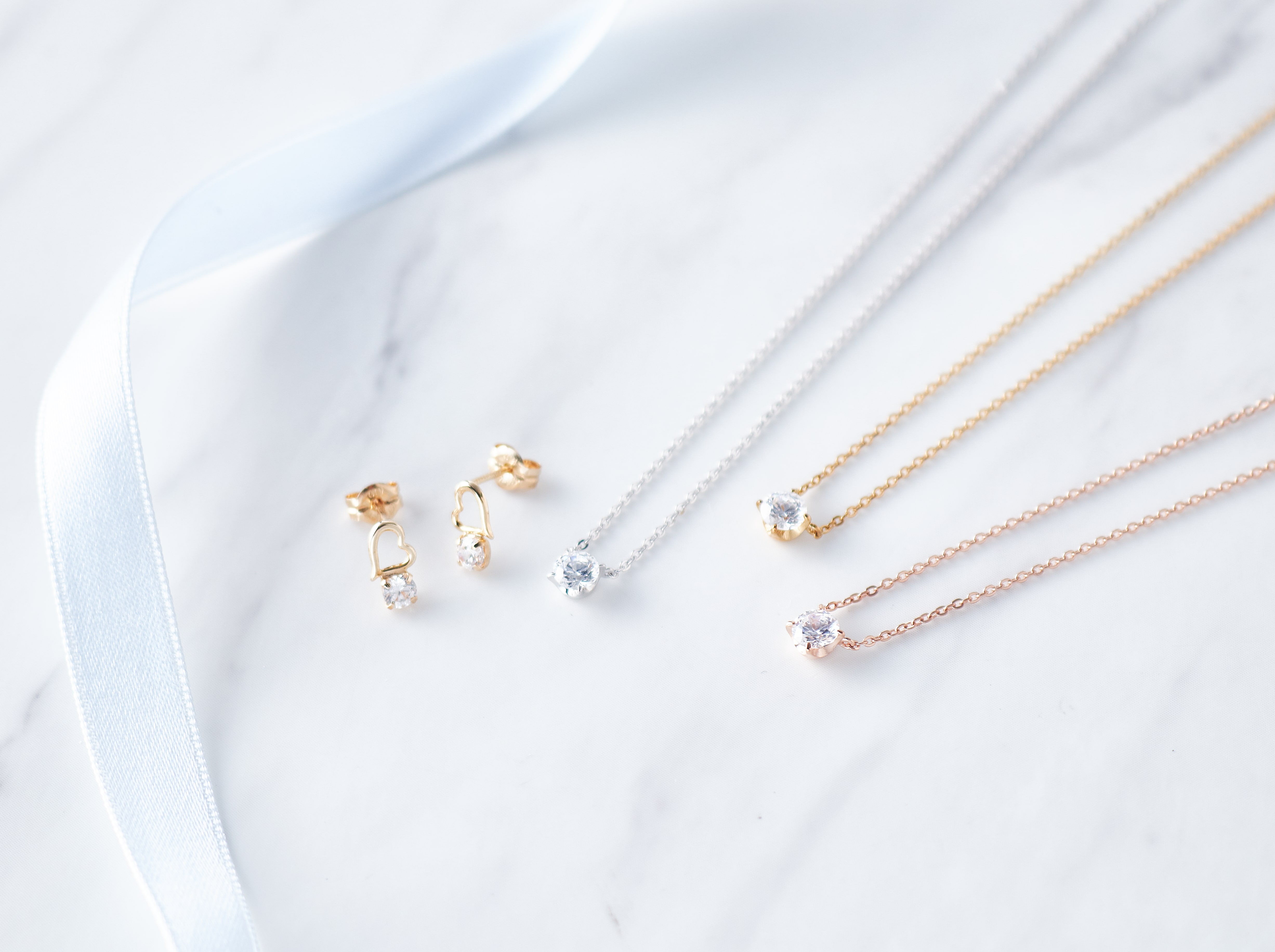 | 素材 | ■ピアス K10イエローゴールド、キュービックジルコニア ■ネックレス ・シルバー+ピンクゴールドコーティング、キュービックジルコニア ・シルバー+ロジウムコーティング、キュービックジルコニア ・シルバー+イエローゴールドコーティング、キュービックジルコニア |
