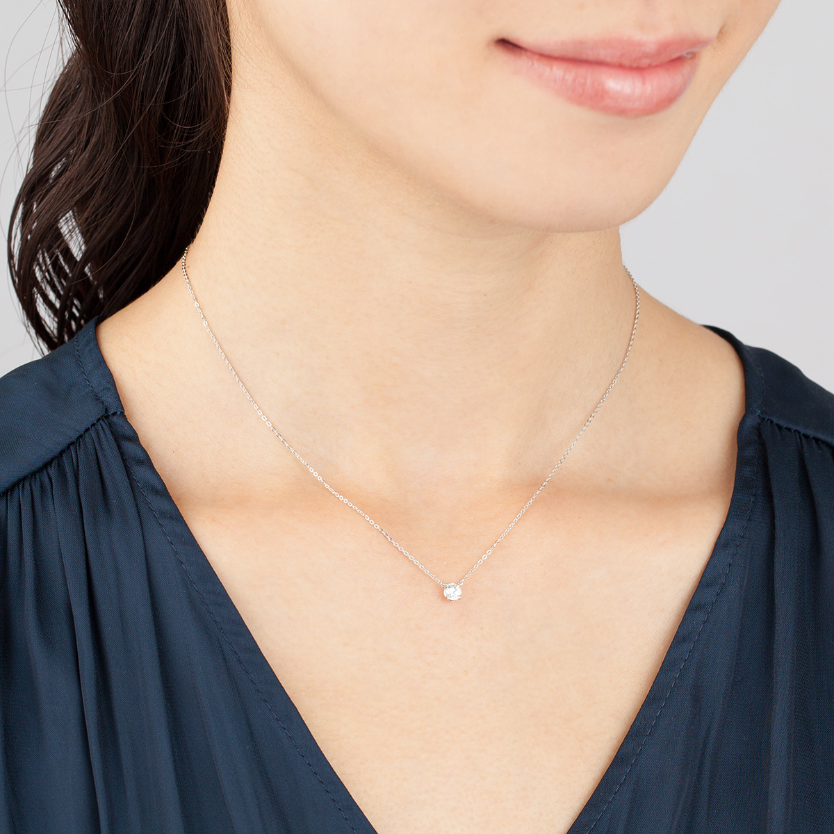 胸元で凛とした輝きを放つ、一粒タイプのネックレス。 どのような装いにも合わせやすいベーシックなネックレスは、一つは持っておきたいアイテムです。
