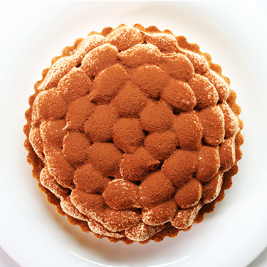 タルト生地にアーモンドクリームを流して香ばしく焼き上げ、自家製のバニラカスタードとアクセントにスポンジに浸したコーヒーとココアパウダーを加え、本格ティラミスのタルトに仕上げております。