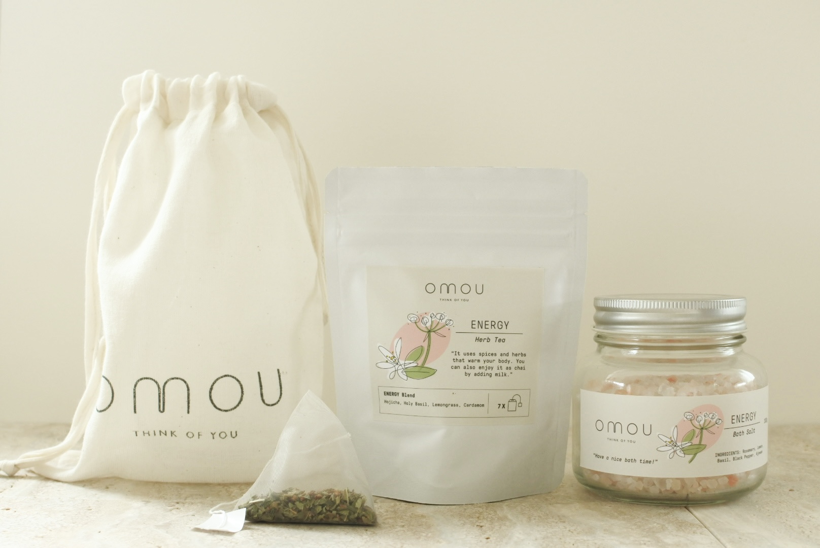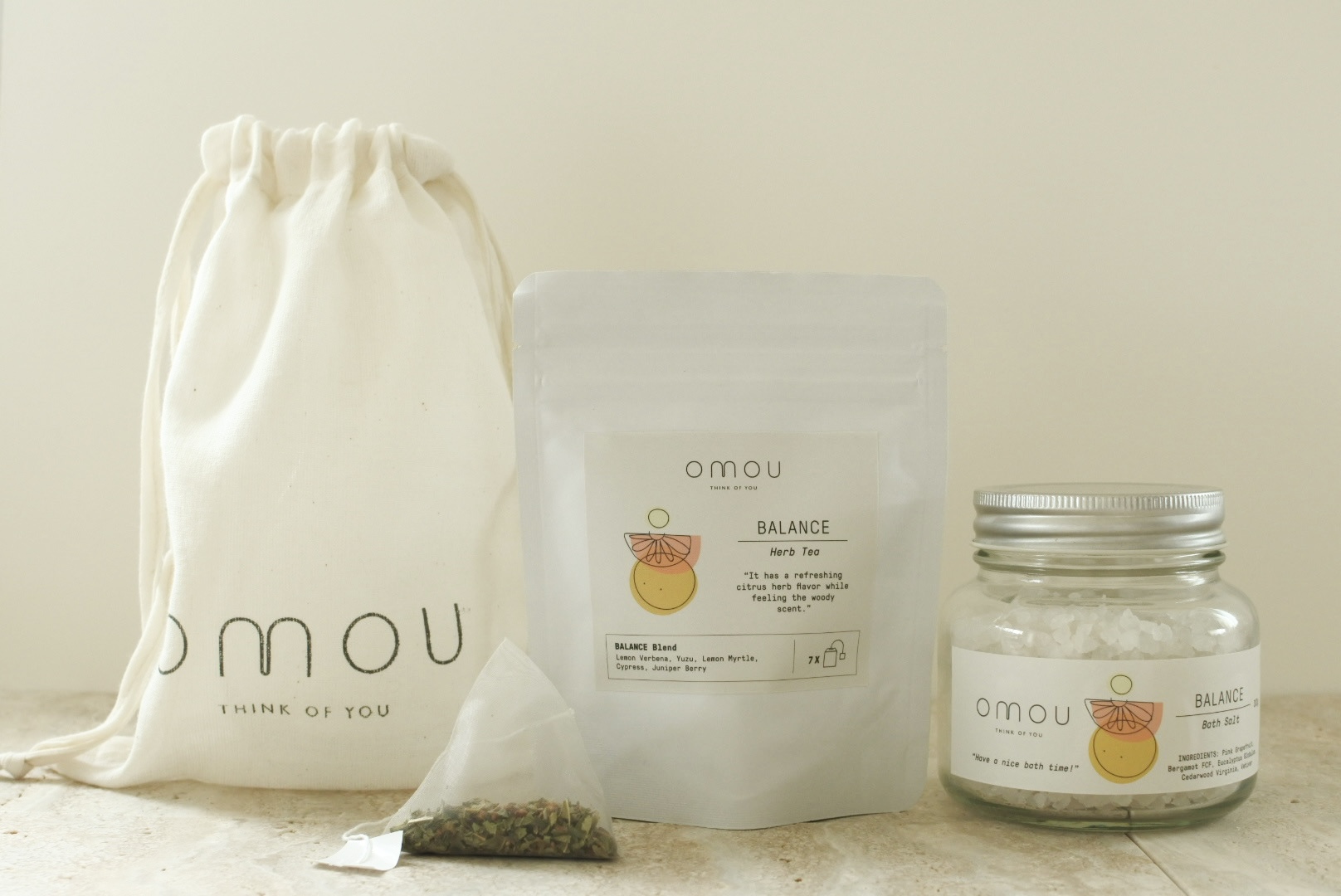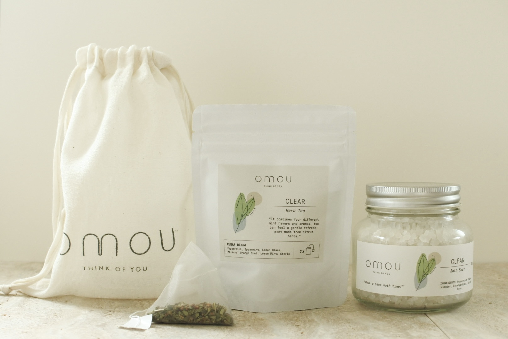自然の恵みをそのまま感じられるように100%天然成分のヒマラヤ岩塩を使用したバスソルトと、自然豊かな場所で化学肥料・動物性堆肥を使用せず植物由来の堆肥のみで育てられたハーブを使用したハーブティー。「バランス」「クリア」「エナジー」の3種類からお選びください。