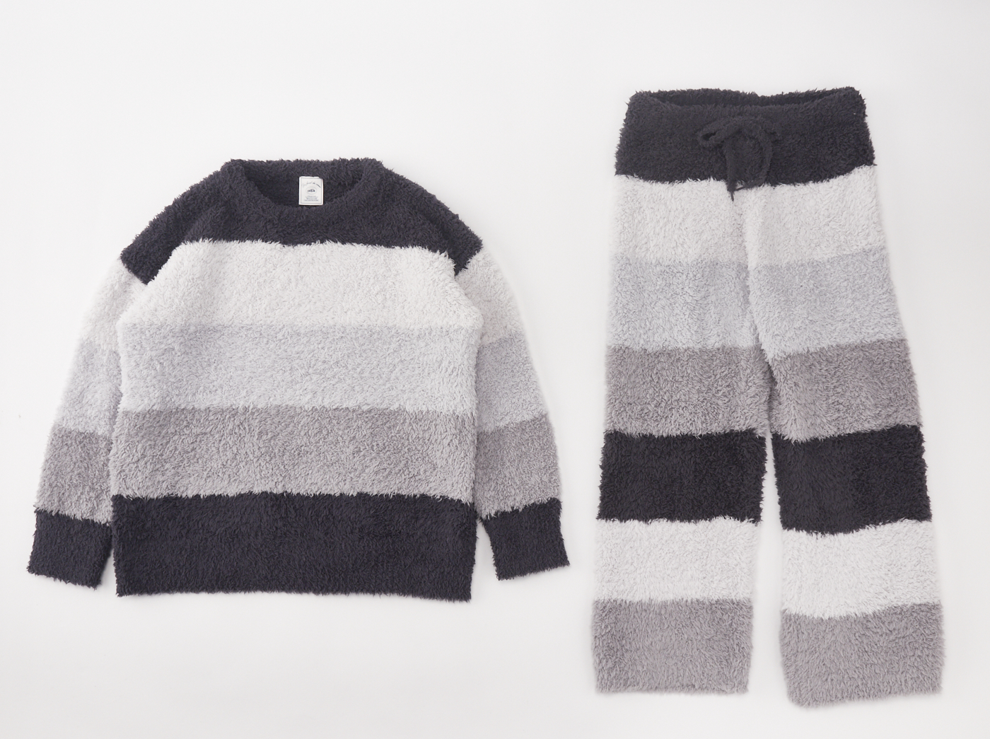 ふんわりとしたジェラートの肌触りはそのままに、ペットボトルのリサイクル糸を使用し、地球に優しいプロダクトに仕上げました。メンズライクなカラーリングを選びましたのでカジュアルなスタイルがお好みの方におすすめのシリーズです。 すっきりとしたネックラインが特徴のプルオーバーはお尻まで隠れるストレスフリーなシルエットで、おうち時間のリラックスタイムにぴったりの一着に。お揃いのロングパンツとのセットアップは勿論、レギンス合わせも好バランスです。