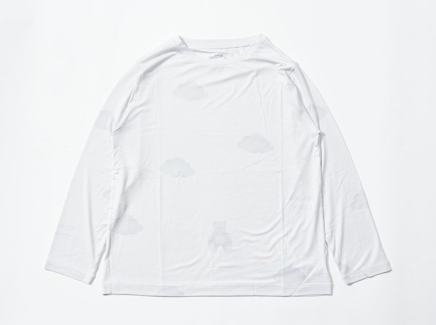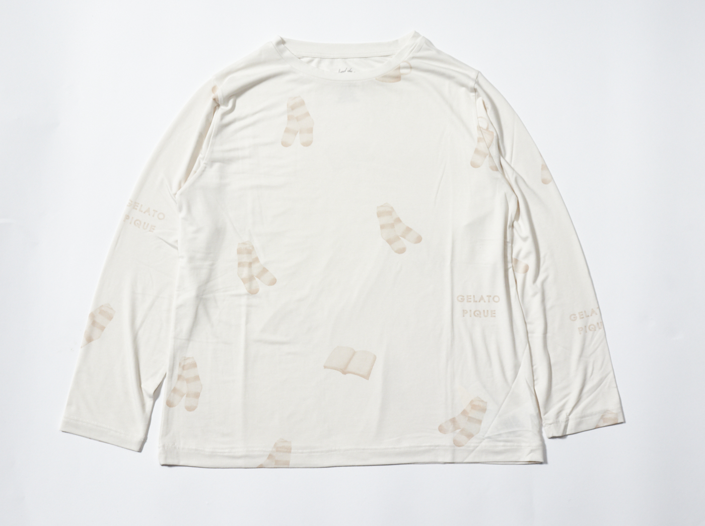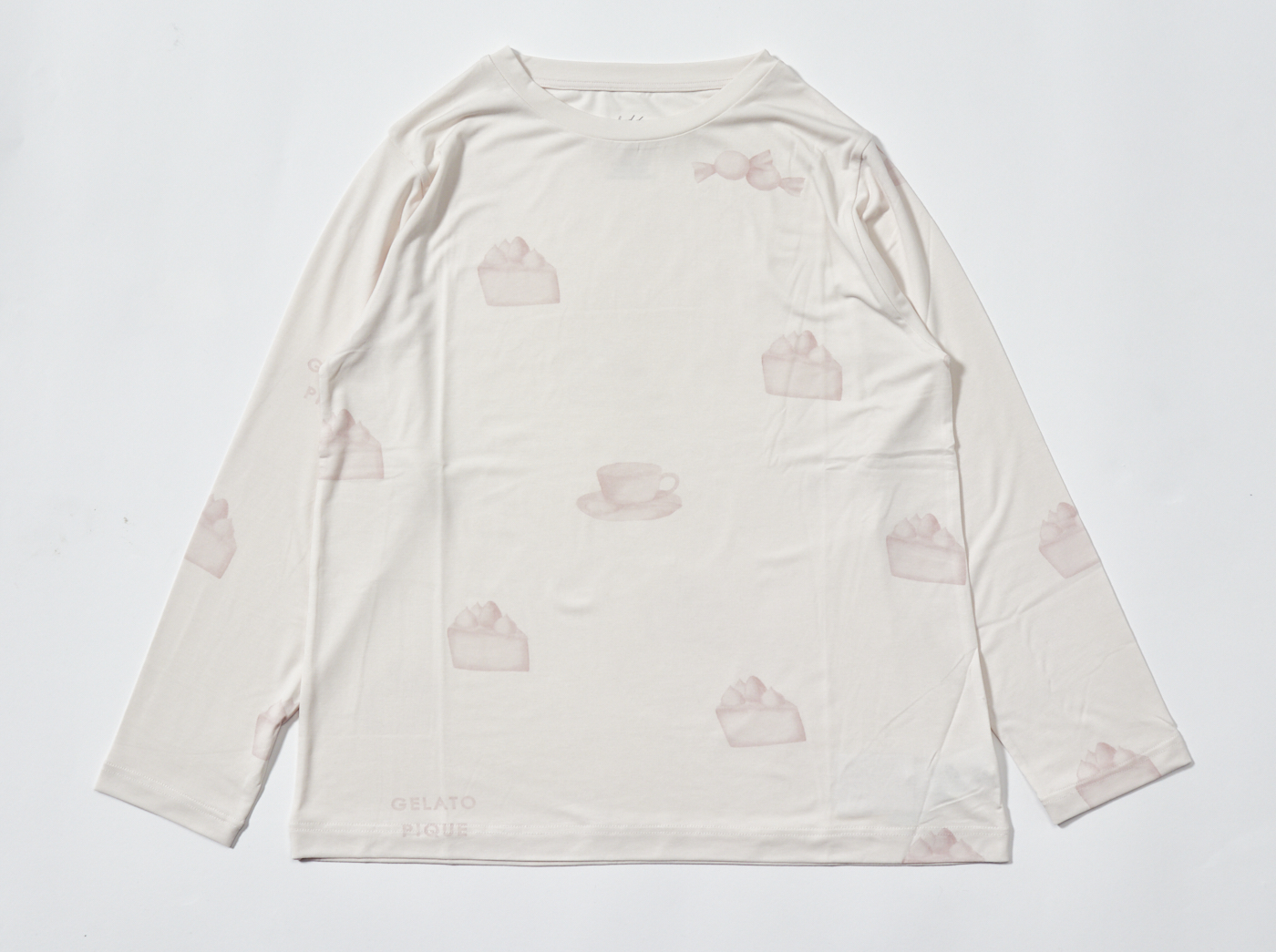 【10%OFF セール中】ゆったりめのシルエットがリラックスタイムにぴったりの「gelato pique(ジェラートピケ)」のカットソー&ロングパンツセット。伸縮性がよく肌触りも柔らかな「リサイクル天竺ECOVERO」素材を使用しています。カラーによってプリントされているモチーフが異なり、ピンクにはケーキ、オフホワイトにはソックス、ブルーには雲が描かれています。