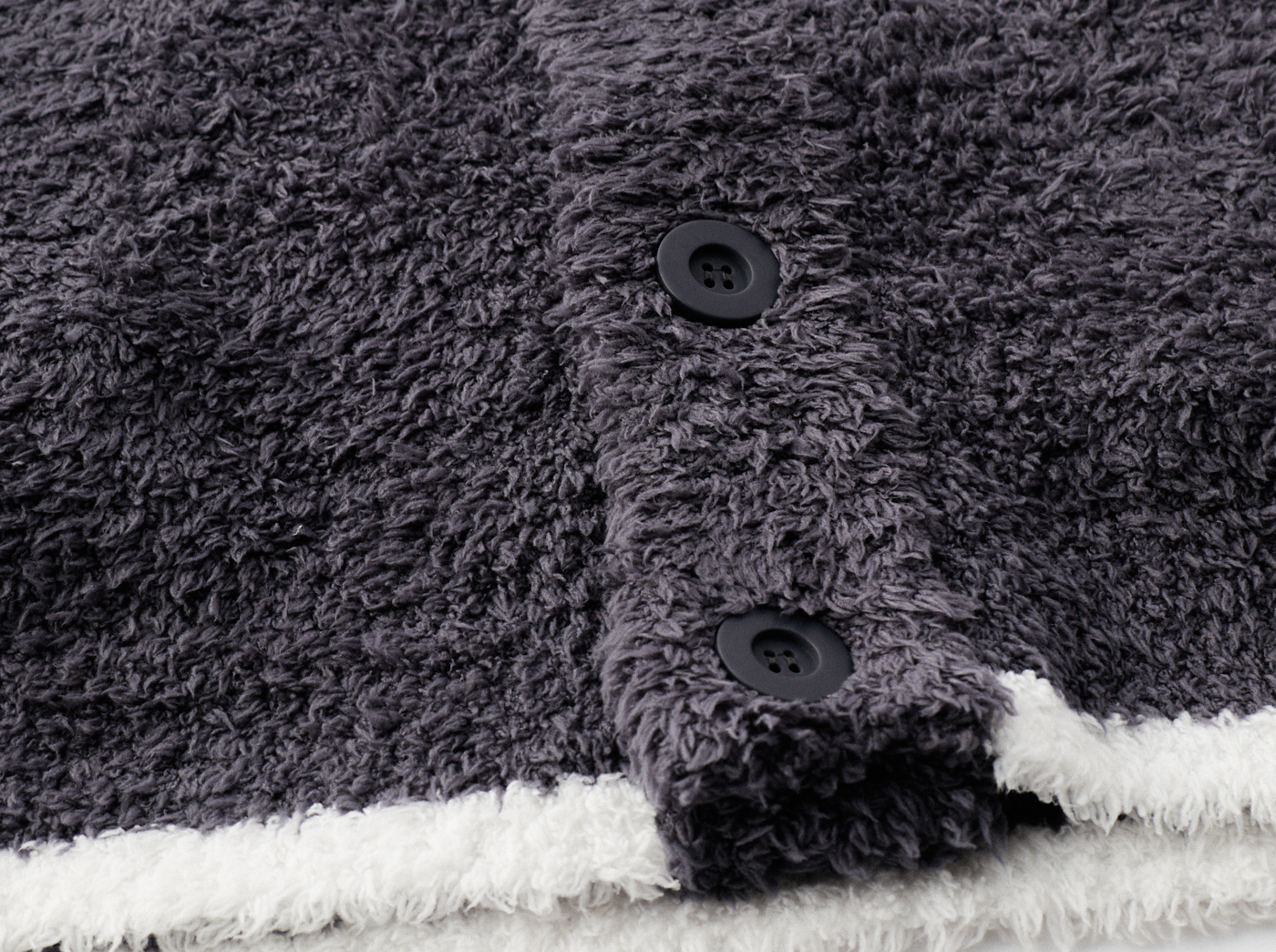 裾と袖元には配色のラインを効かせてクラス感のあるアクセントをプラス。首回りまで暖かく包むショールカラーと極上のジェラートの肌触りも相まってリラックスタイムをより格別なものへと導きます。