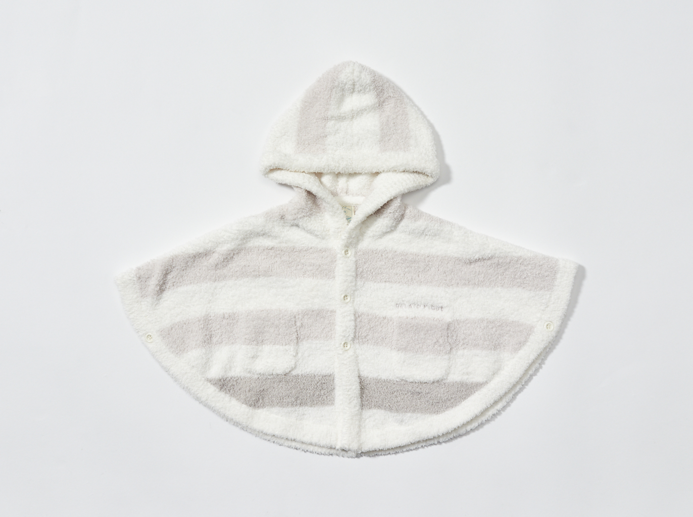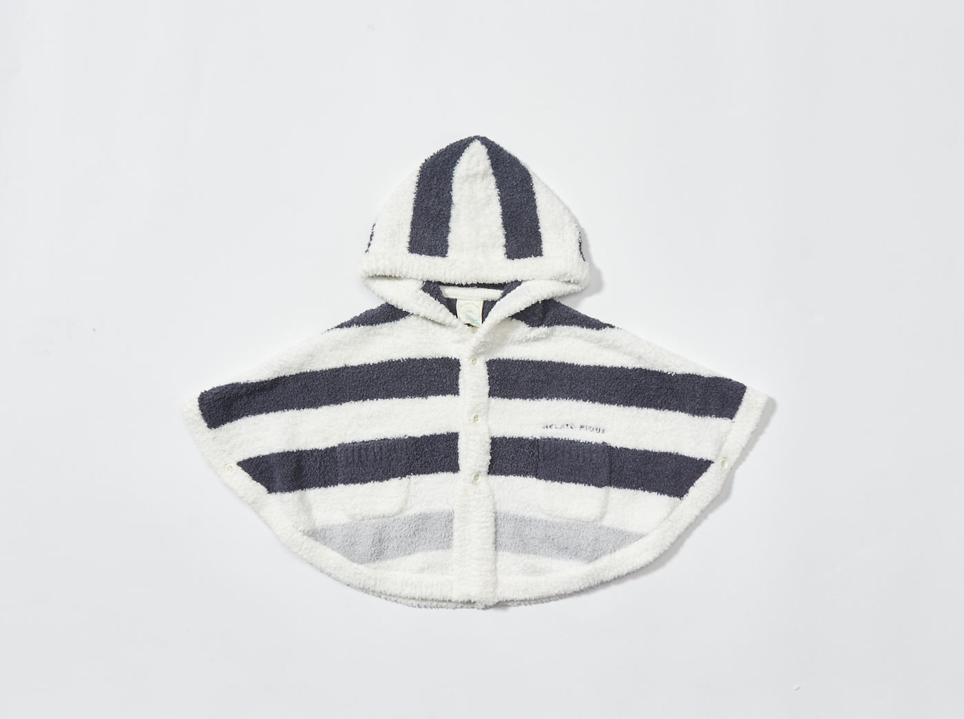 大口注文・法人のお問い合わせはこちらシンプルな2色ボーダーの中に一本優しいカラーを差し込み、温もりのあるデザインに仕上げたトリムボーダーベビーポンチョ。さらりとした心地良い肌触りが続く「パウダー」素材を使用しています。ルームウェアとしてはもちろん、外出時の温度調節やアウターとしても重宝するポンチョは、袖を通さず羽織れるお着替えのしやすさがポイントです。 ※サイズ80は、12ヵ月頃までのベビー向けです。(ハイハイ・たっち期)