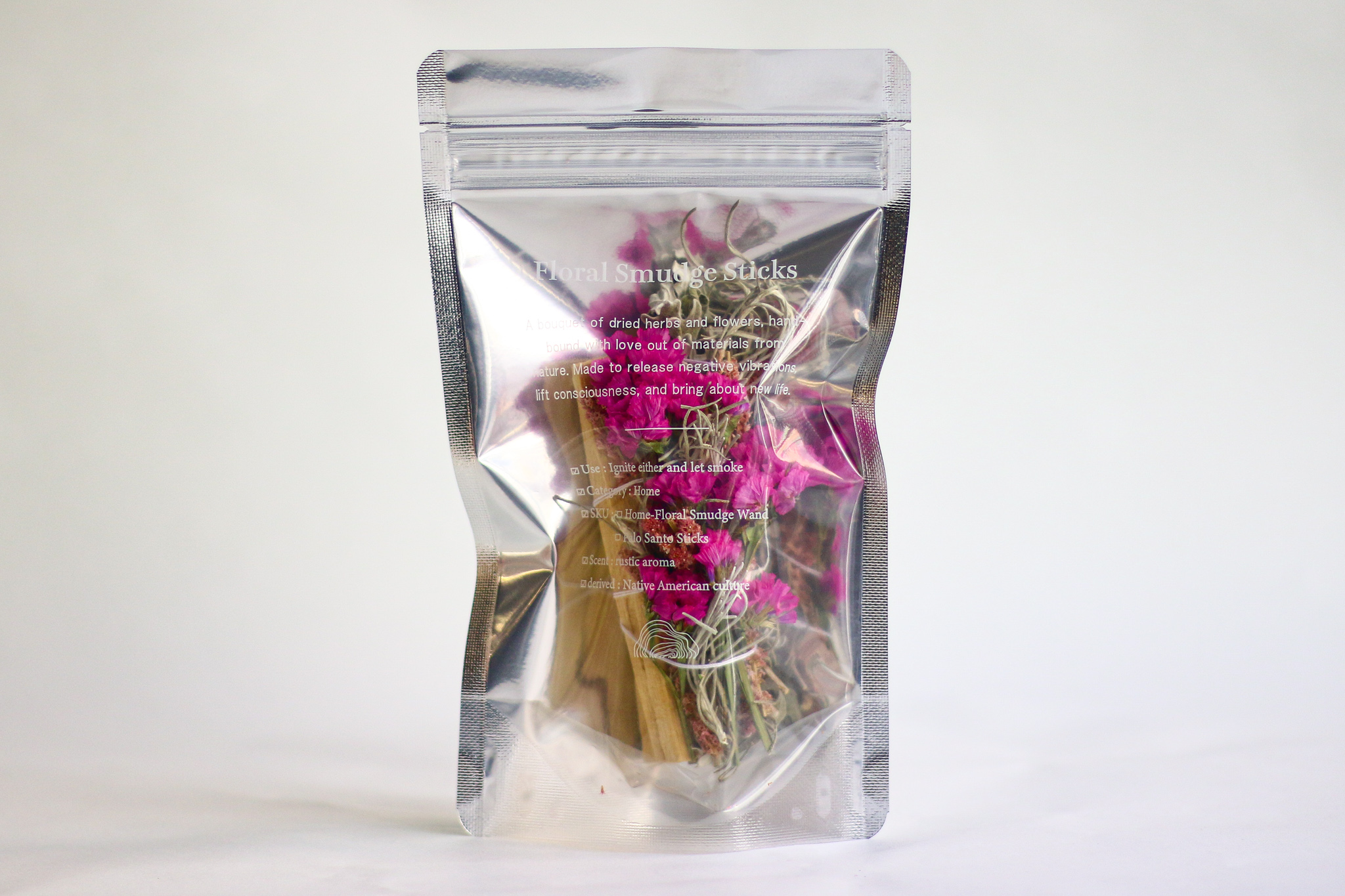 大口注文・法人のお問い合わせはこちらネイティブアメリカンの間で魔除や空間浄化の儀式に使われていた、 「Smudge stick(スマッジスティック)」とパロサントのセット。 神聖なハーブや廃棄花をアップサイクルしたドライフラワーを束ねた現代版スマッジは、インテリアや天然のアロマとしても暮らしを楽しめるナチュラルなデザインです。 ドライフラワーとともに束ねた神秘の香木「パロサント」を焚けば、濃厚な香りがお部屋を満たし、幸福を呼び浄化効果を得られるスマッジングとしてお楽しみいただけます。 パロサントの煙は古代から邪気を払い、幸福を呼び込む神聖なものとされており、 withコロナの暮らしにおいて、空気を綺麗にし幸運を呼び寄せるアイテムとして、 お部屋の浄化や集中力UP、気分転換ができると今まさに注目が集まっています。 人工の化合物を一切使わず、パロサント本来が持つ豊富な樹脂からなる豊潤な香りが特徴。 わずかな木片だけでも濃厚な香りを放ちます。 また香木の中でも香りが強く持続性が高いことも人気で、お部屋の芳香剤としても人気です。 火を灯さずとも濃厚な甘い香りは精神を落ち着かせる癒しアイテムとして◎。 ヨガや瞑想時に使用すれば高いヒーリング効果が期待でき、天然のアロマとしてもそのままお楽しみ頂けます。 お好みの器に入れてリビングや玄関のインテリアとして飾るのもおすすめです。