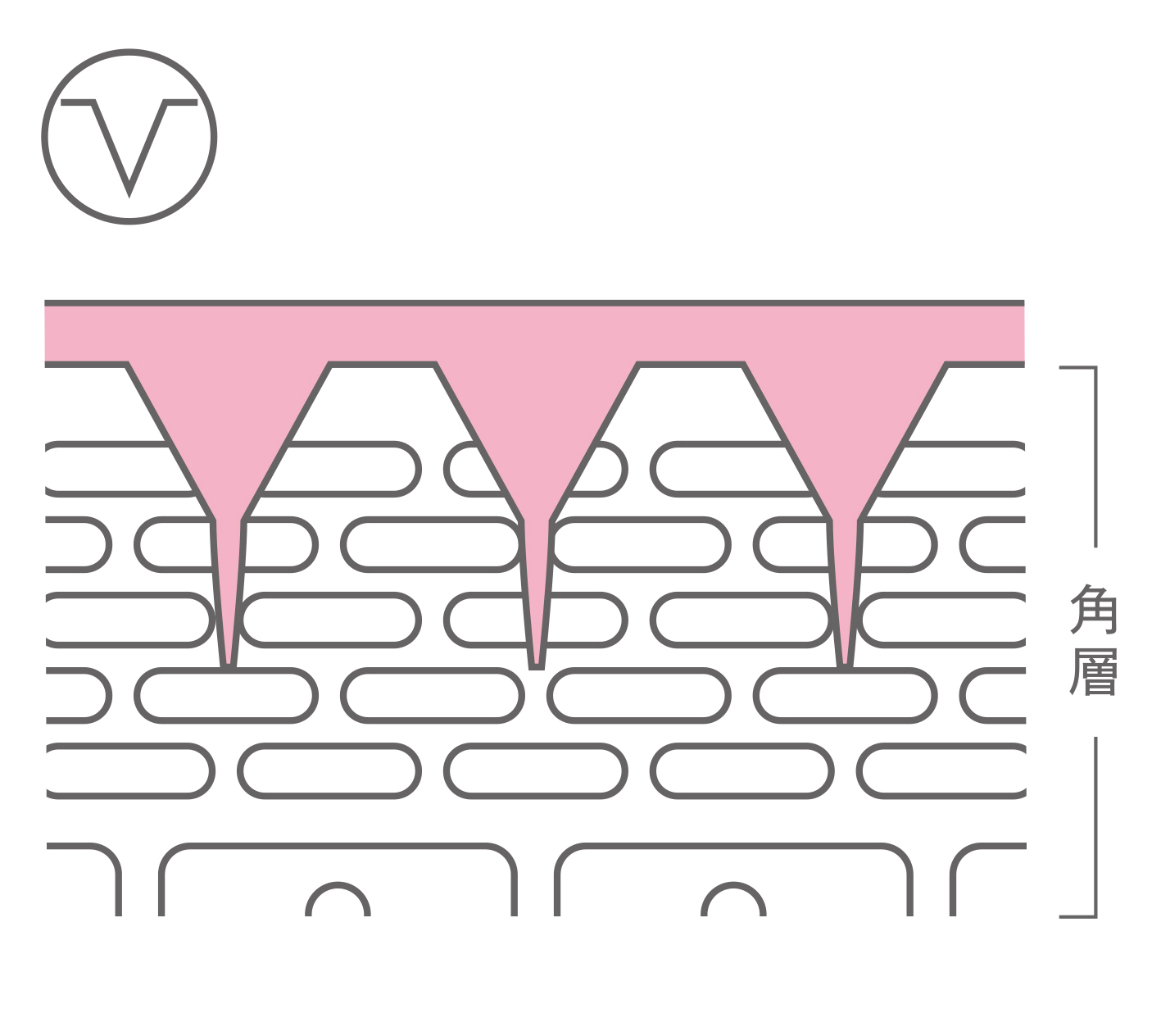 ①刺さる:炭酸マイクロニードルを角層に直接刺し込む。ヒアルロン酸が徐々に溶け出します。