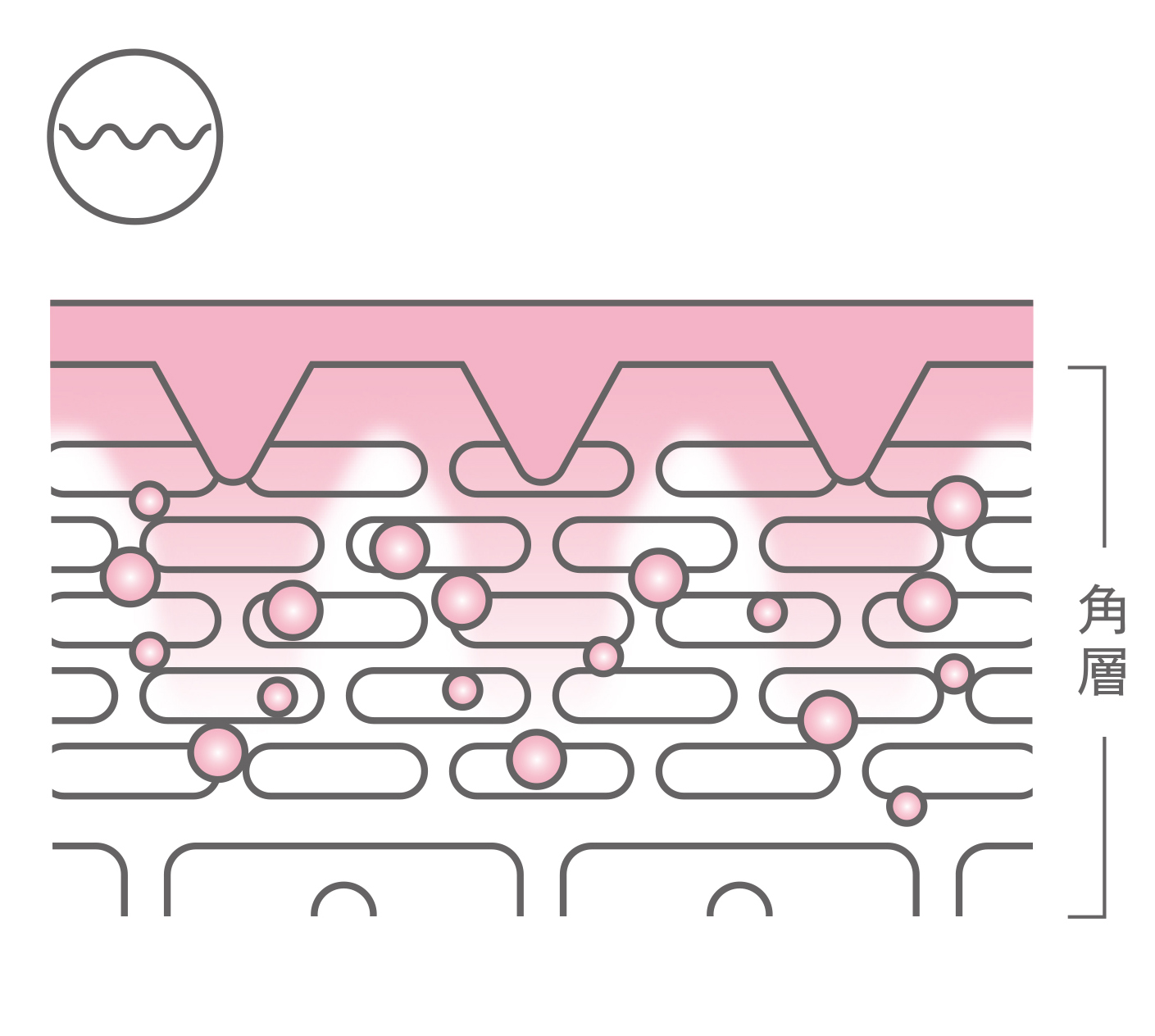 ②めぐる:角層の内部で炭酸が発生。炭酸とともに、たっぷりの美容成分を角層にめぐらせます。