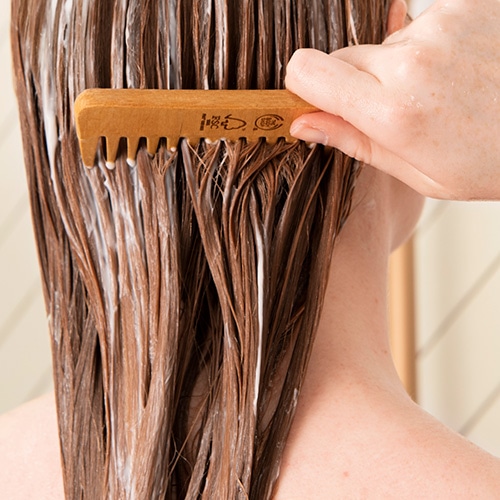 シャンプーの後、主に毛先に集中して塗布します。2~3分放置した後、十分にすすぎます。