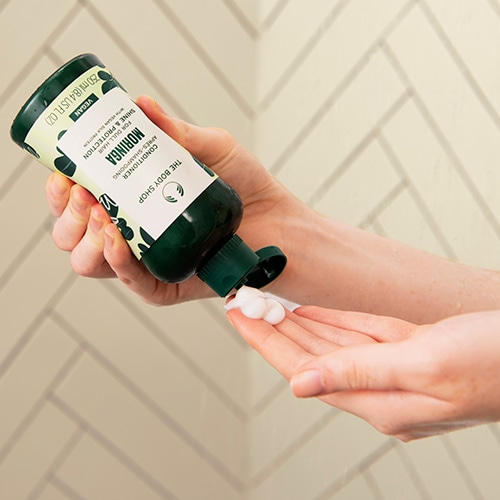 植物の力を最大限に生かした、日本初ヴィーガンシルクプロテイン*1配合の新ヘアケアシリーズです。効果に究極にこだわり、たった一度の使用で高い効果を実感しています。 *1独自開発の成分、合成遺伝子組み換えクモポリペプチドー1 *2モリンガ3種のヘアケア使用、個人の使用感の感想。ザボディショップ調べ