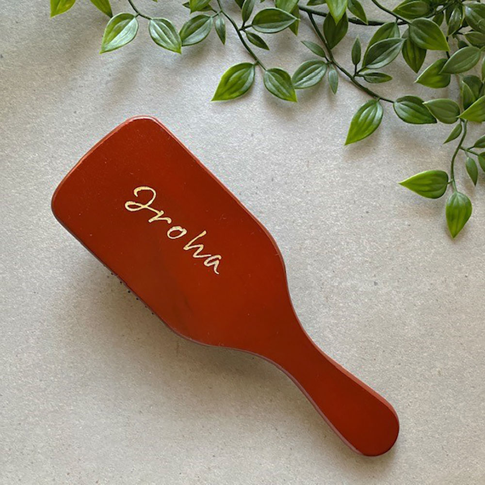 世界に1つだけのお品を大切に製作する「studio.iroha(スタジオ イロハ)」が、大きめのルックスがおしゃれなパドルブラシにご希望の文字(英字)を彫刻してお届けいたします。絡まった髪も簡単にとかせ、頭皮のマッサージもできる美髪ケアにも欠かせない今人気のアイテムです!