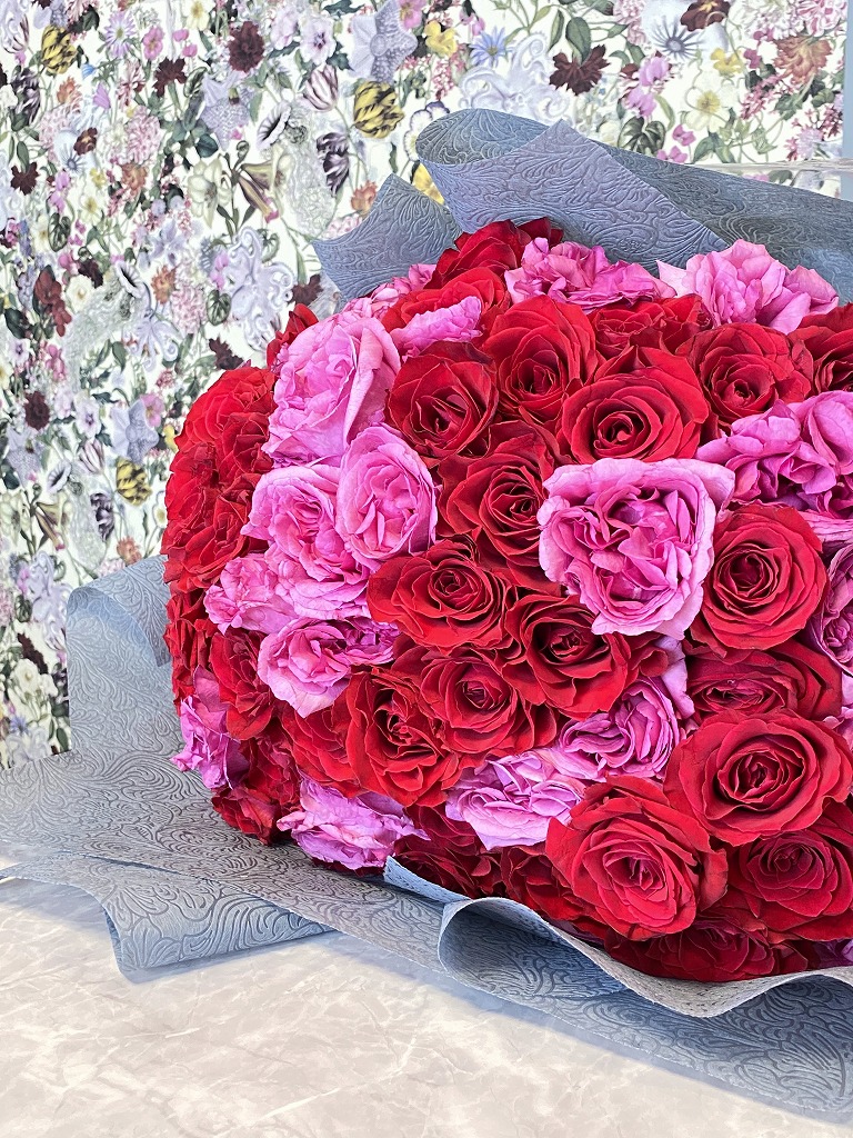 プロポーズシーンにぴったりな108本のバラのブーケ。ブーケにも思いが込められており、映画のワンシーンのように演出。プロポーズシーンにぜひ、ご利用ください。