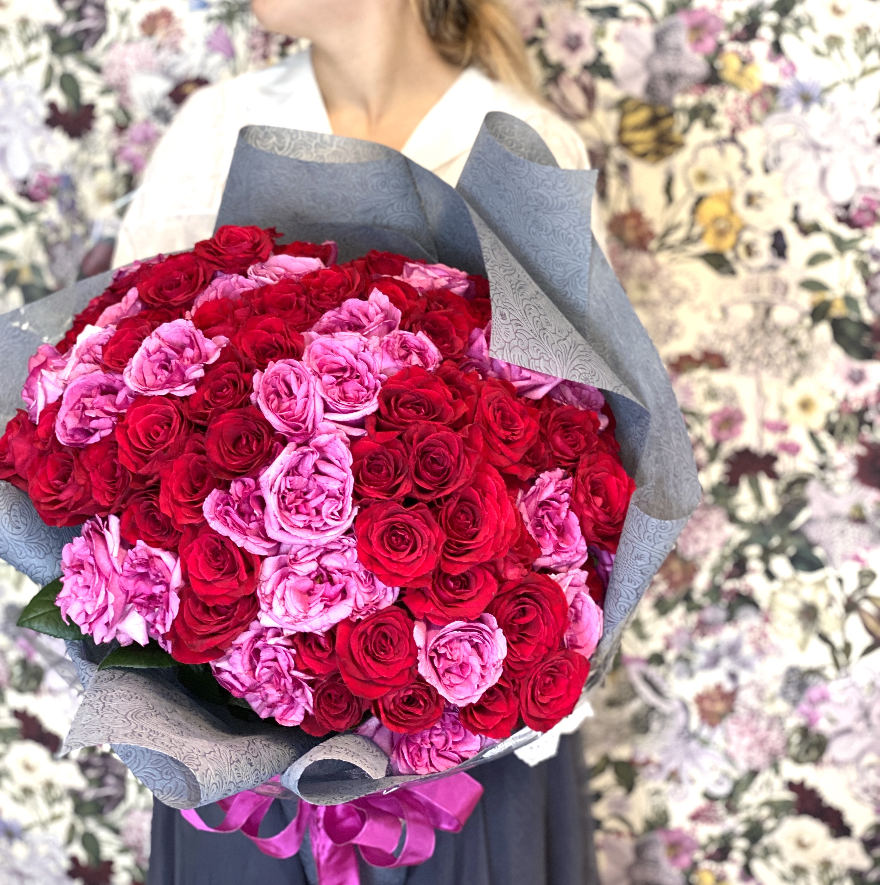 写真と実物のラッピングは異なります。 ※天候などにより指定の品種の本数が揃わない場合は同等同色品種に代わる場合がございます。