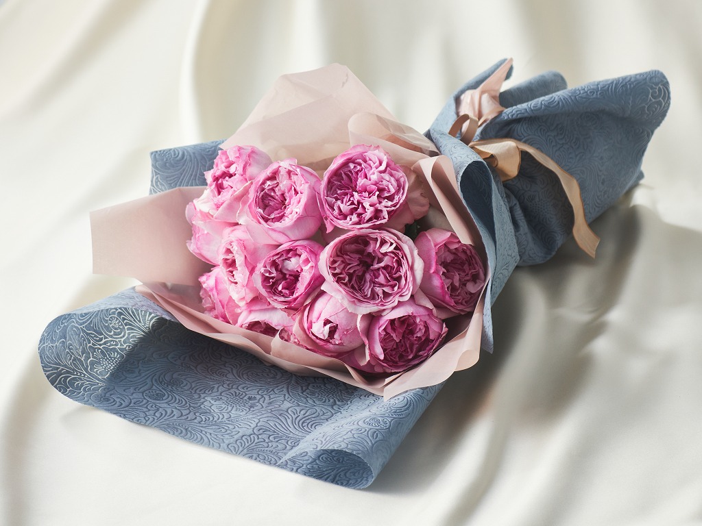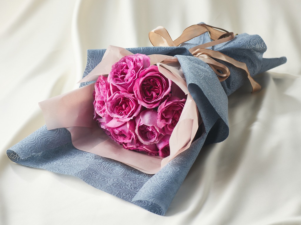 美しく品格のある花姿、芳醇な香り、丈夫な茎と花保ちの良さ、トゲの少ない扱いやすさにこだわった、フラワーデザイナー目線のバラ、ピンク系4品種(Miwako、AROMATIQUE、ROSETIQUE、CHERRYTIQUE)とレッド系1品種(ROUGETIQUE)とホワイト系1品種(BLANCTIQUE)です。お相手のイメージに合う色をお選びいただけます。